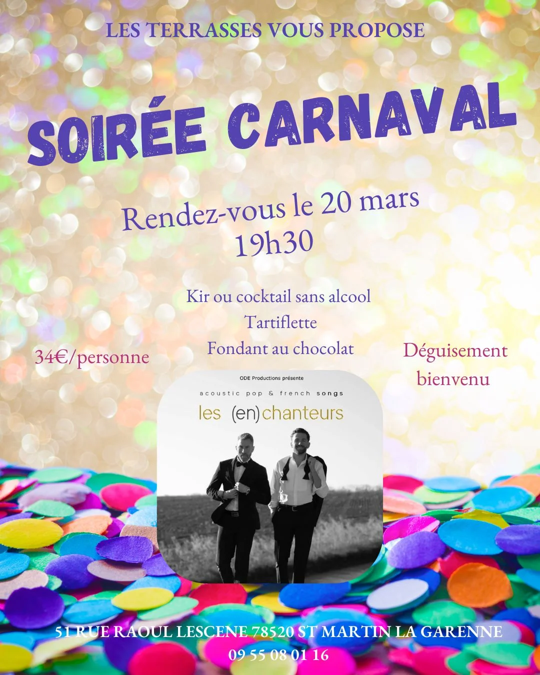 30 mars - Soirée carnaval avec les Enchanteurs aux Terrasses de Saint-Martin